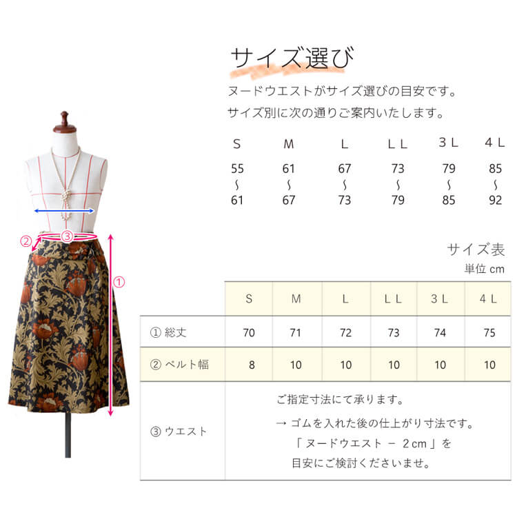 ![モリスの「アネモネ」柄でデザインしたセミフレアなサッシュベルト風スカート]()