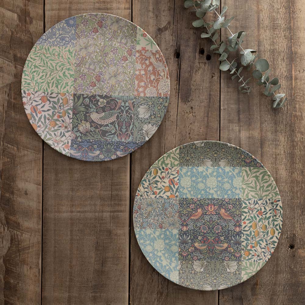 こちらはウィリアム・モリスの様々なパターン柄でデザインした竹ファイバー素材のプレート(2枚セット)です。