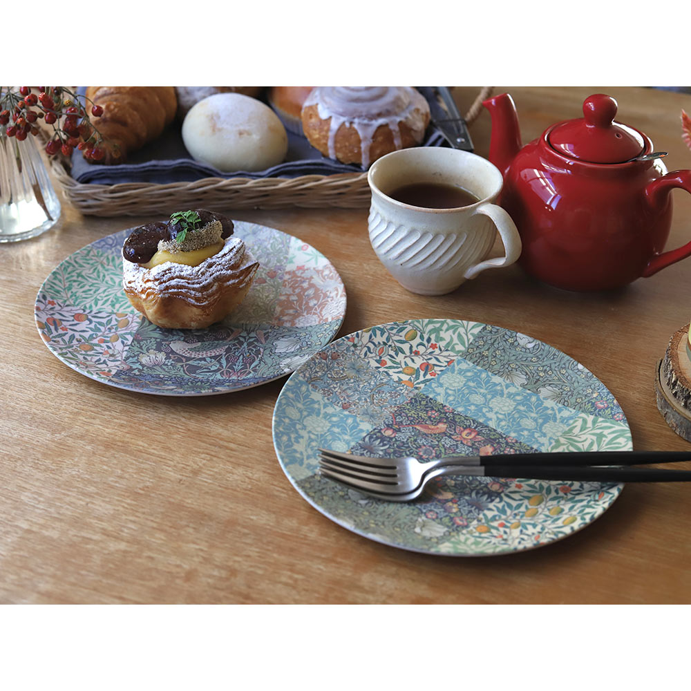 このプレートは、そんな彼の作品の中から「いちご泥棒」や「フルーツ」、「ゴールデンリリー」、「ウィローボウ」など人気の柄を贅沢にデザイン、更に複数組み合わせたりパッチワークの様に繋げたりと独創的なスタリングが施されています。