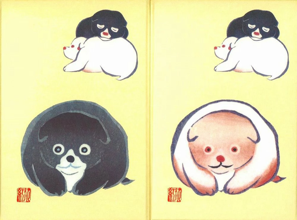 ![中村芳中の愛らしい子狗が、御朱印帳に]()