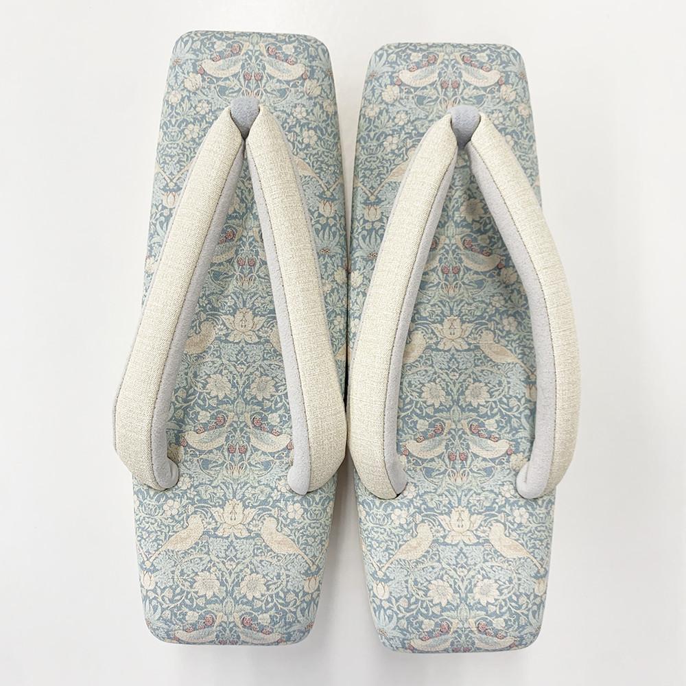 ウィリアム・モリスの「いちご泥棒」が、足元を彩る。モダンな草履で、お出かけをもっと楽しく