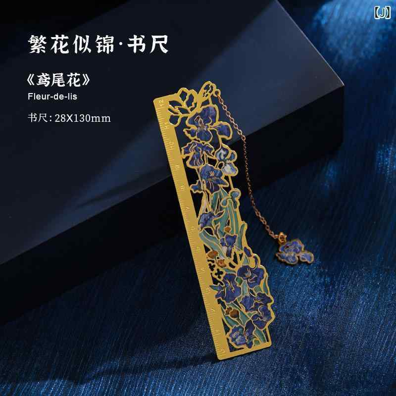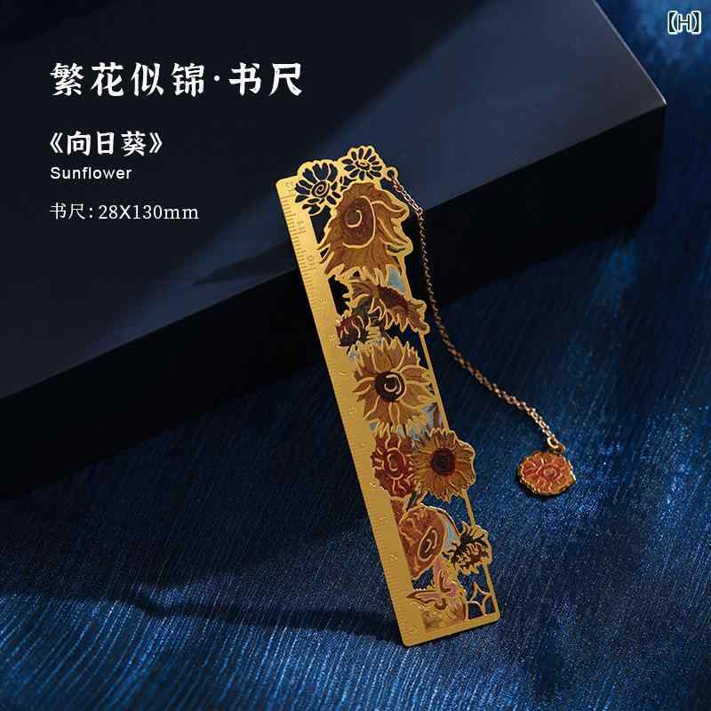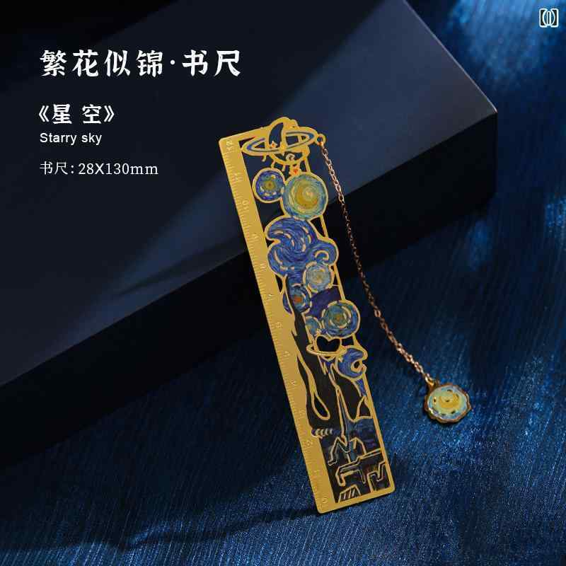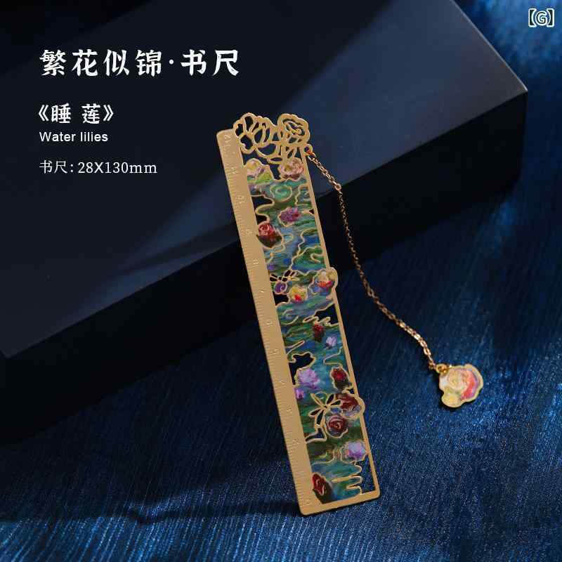 ゴッホやモネなどの名画をモチーフに金属プレートに透かし彫りでデザインしたルーラーやチェーン付きの、この栞/ブックマークは単なる目印に留まりません。