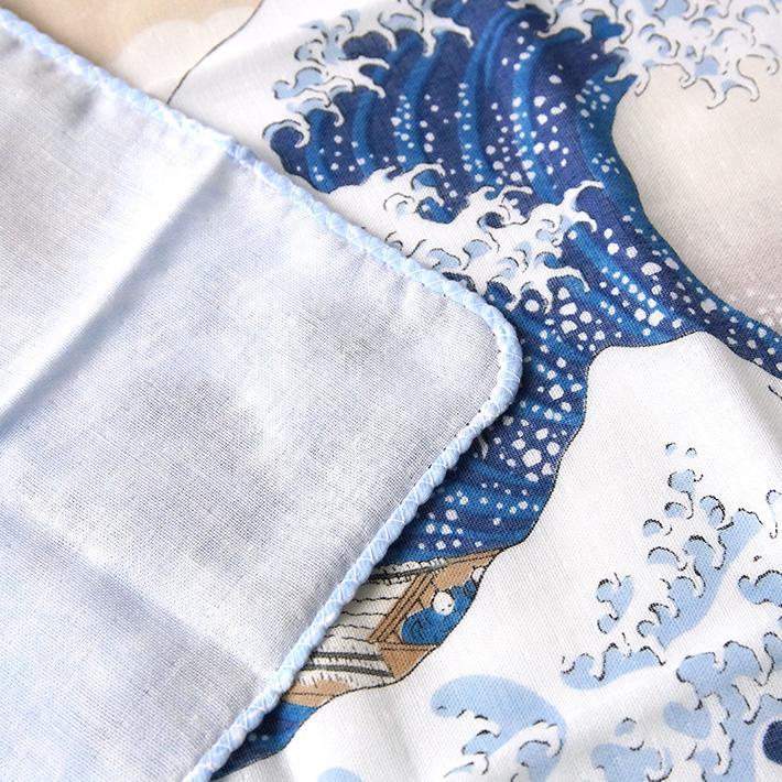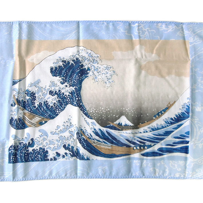 ふんわり柔らかい、葛飾北斎「神奈川沖浪裏」が描かれた手ぬぐい