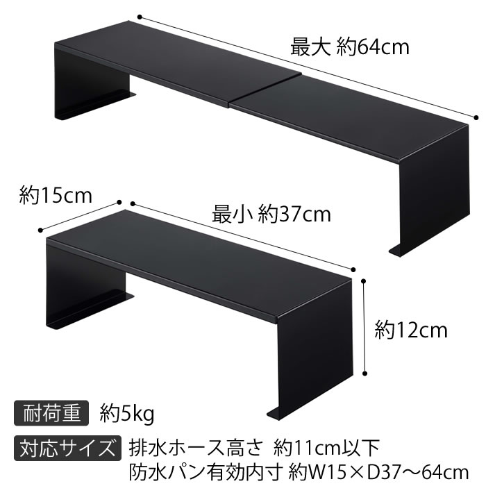 画像のように排水ホースの上に棚を作る事でスペースを確保できるようになります