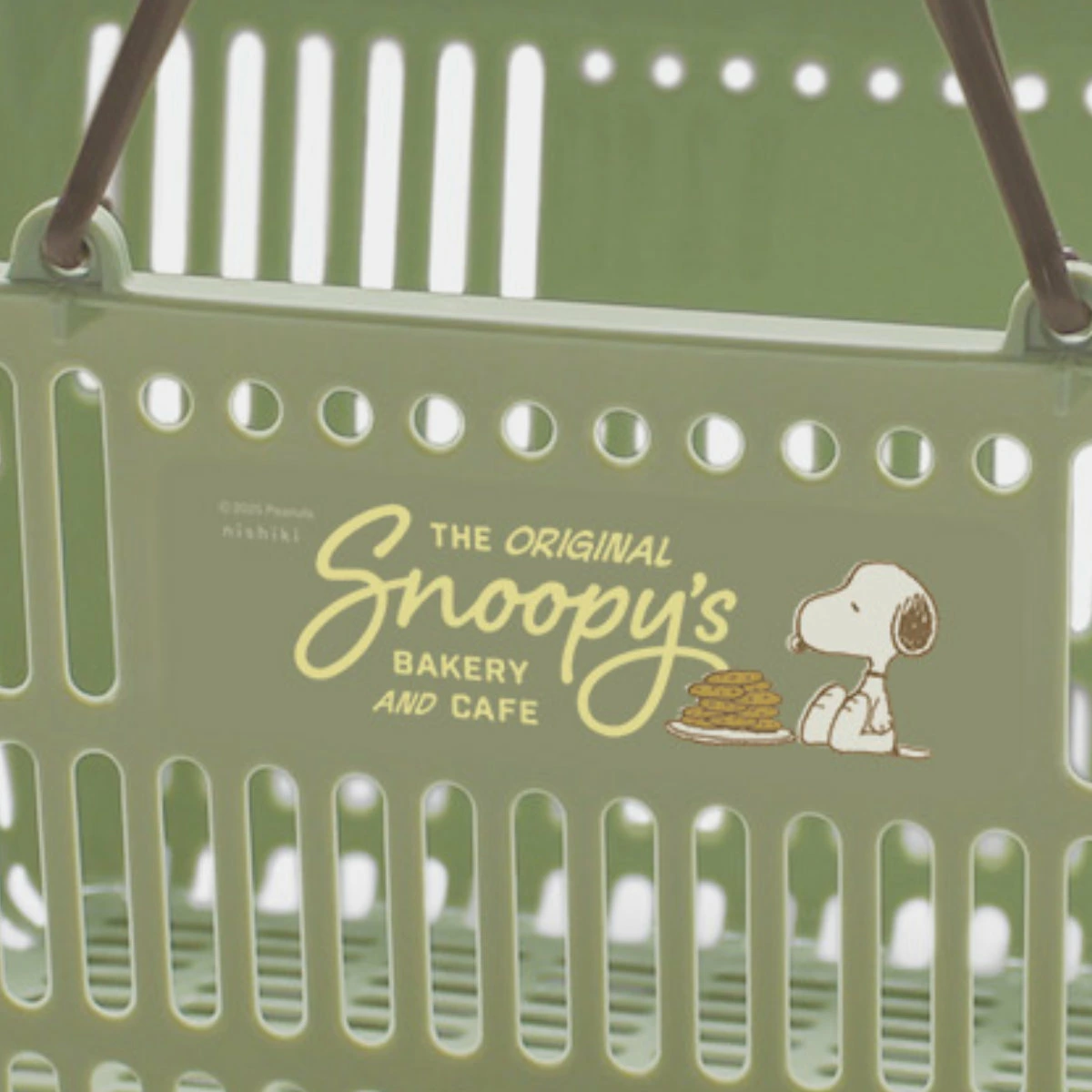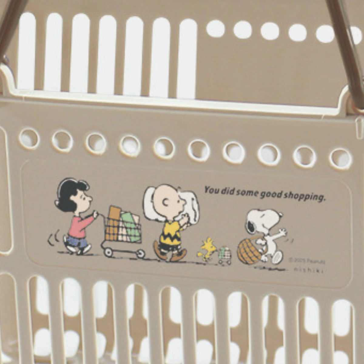 レジかごには、ワンポイントでスヌーピーと仲間たちが描かれており、そのさりげない可愛さが心を和ませてくれます。
