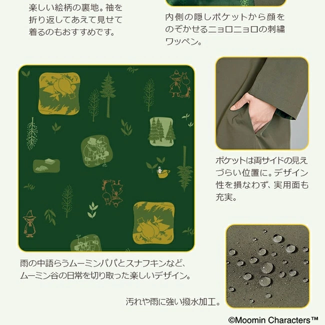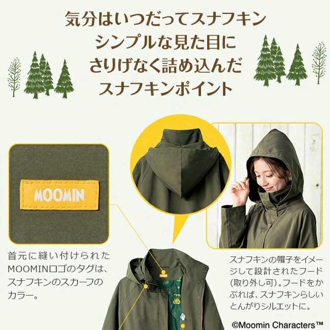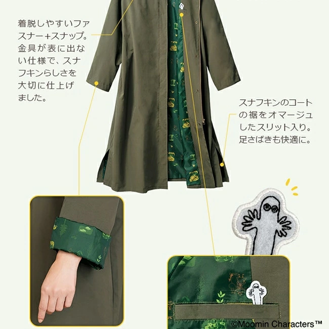 色合いやディテールなど物語内のイメージを大切にデザインされており、スナフキンのコートを連想させる落ち着いたグリーンのカーキカラーを採用。