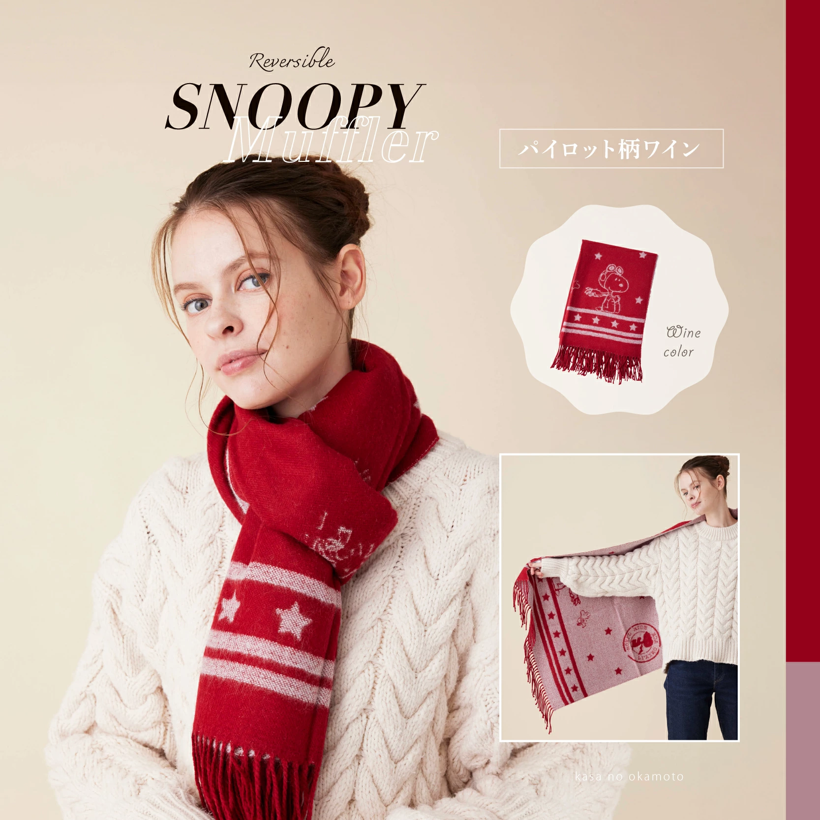 このスヌーピー柄ストールは自分用としてはもちろん、大切な人への贈り物としても自信をもっておすすめできます。