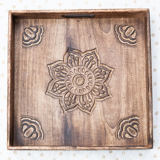 マンゴーウッドの風合いと優しい手彫りのハンドメイドなスクエアウッドトレイ