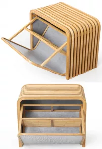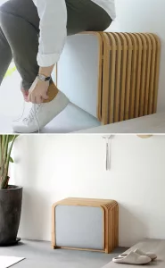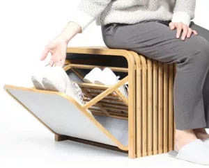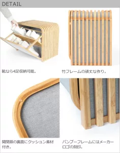 竹とファブリックを組み合わせた上品で耐久性のあるスツール兼用シューズラック。