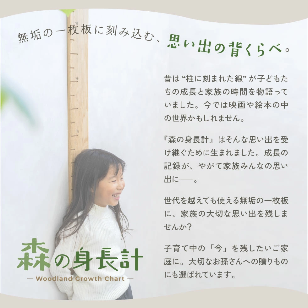天然木の温もりと、成長の記録。森の身長計で、思い出を刻む特別な時間