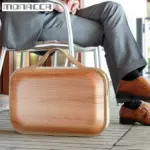 この懐中時計の最大の魅力は、真鍮製の八角形フレームと、極薄に削り出された天然木の文字盤の美しい組み合わせ。